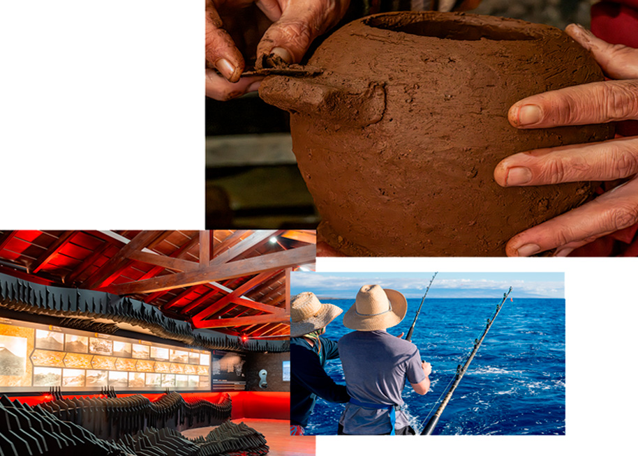 El Centro Alfarero y Museo Etnográfico Cha Domitila, en el pueblo de Arguayo, conserva la técnica aborigen de la alfarería, con procesos manuales que respetan la tradición. En Puerto de Santiago, el Museo El Pescador rinde homenaje a uno de los oficios que definieron la vida en la costa: la pesca artesanal. Por su parte, el Centro de Visitantes Chinyero, con recursos interactivos y expositivos, muestra la historia de la vulcanología en la isla de Tenerife y la última erupción acontecida en la isla, la del Volcán Chinyero, en Santiago del Teide.