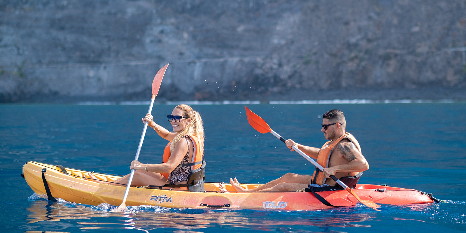 Practicar kayak en Santiago del Teide es una forma diferente de explorar la costa de Tenerife. A lo largo de la ruta, se navega al abrigo de los Acantilados de Los Gigantes, una formación geológica con paredes verticales que superan los 600 metros de altura y que constituye uno de los paisajes más singulares de las Islas Canarias.